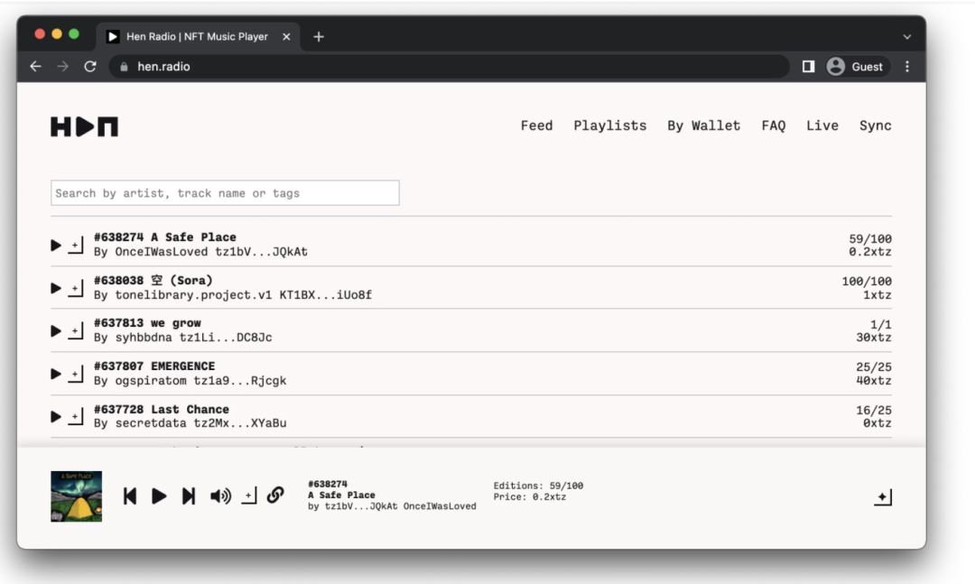 建立在 Hic et Nunc (hen.radio) 之上的實驗性音樂分發平臺