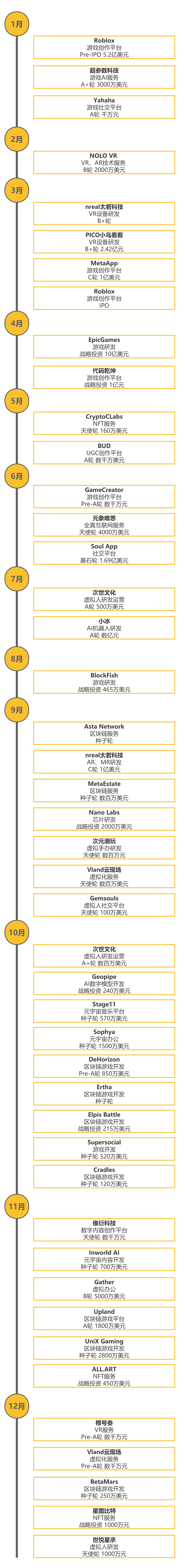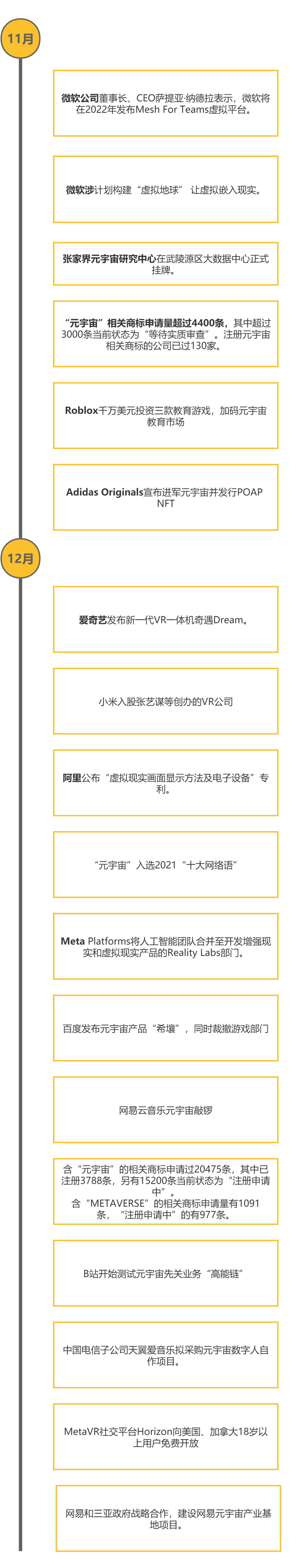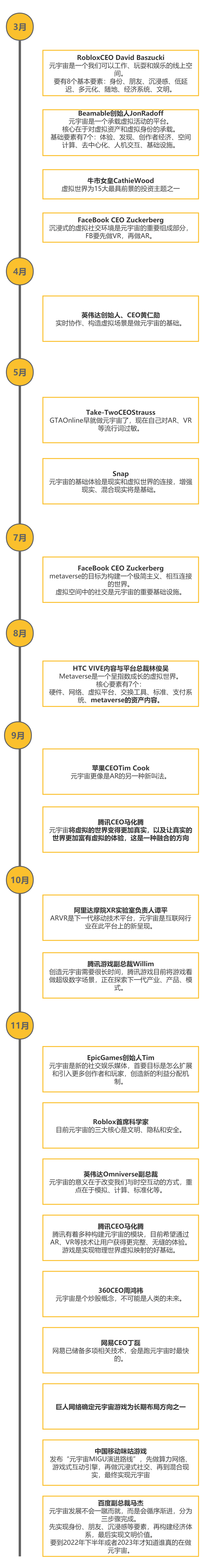 所以,我們分企業觀點、投融資、主要事件三個部分,做了一個2021元宇宙時間軸。