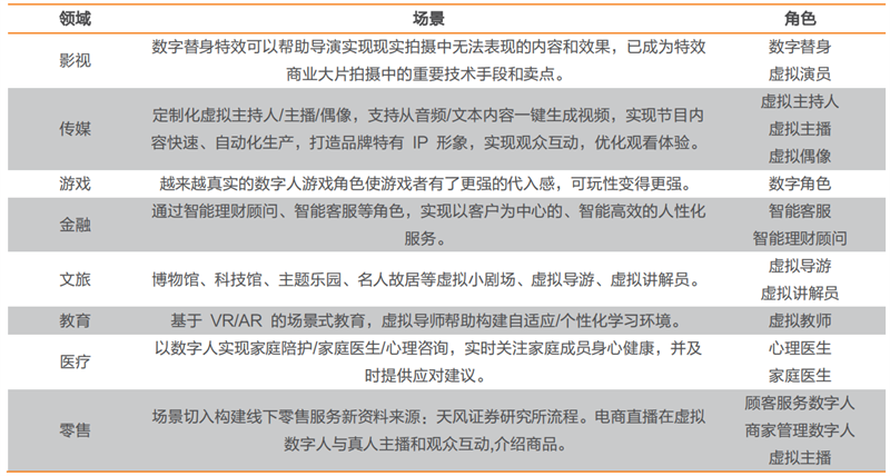▲虛擬數字人產業生虛擬數字人應用領域、場景及充當角色