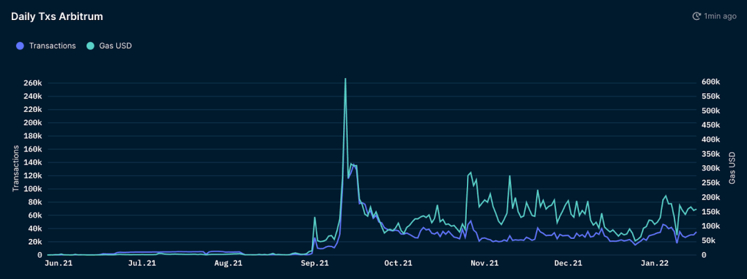 就最近 30 天的唯一活躍地址而言,Optimism 有 45.2k,而 Arbitrum 則略多一些,為 66.8k。Optimism 和 Abitrum 都處理大約 2-3% 的以太坊交易總數,分別處理 21k 和 34k 交易。自兩條鏈的主網公開發布僅幾個月,隨著時間的推移,我們可能會看到更多的 dApp 和用戶參與這兩條鏈。