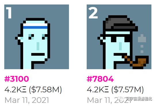 Cryptopunks #3100 & #7804也雙雙以4200ETH售出,價值750萬美金的jpg也讓新聞刷屏了。