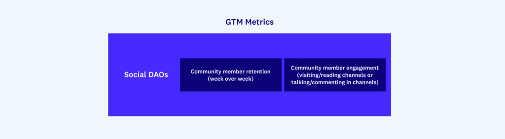 對于社交、文化和藝術 DAOs 來說,進入市場意味著建立一個有特定目的的社區——有時甚至是從朋友之間的文字聊天開始——并通過尋找其他有相同目的的人來有機地發展這個社區。但這難道不是“只是一個群組聊天”,或者只是像傳統的 Kickstarter 眾籌那樣嗎?不是的,因為雖然傳統 web2 眾籌項目的組織者可能也有明確的目標,但他們必須更加清楚自上而下實現這個目標的方法。項目發起人通常會詳細列出籌集資金的用途、清晰的產品路線圖和全面的時間表。在 web3 模型中,目的是最重要的,但方法通常是稍后才確定的——包括資金將如何使用、產品路線圖和時間表。例如,對于 ConstitutionDAO,其目的是購買美國憲法的副本;對于 Krause House 來說,其目的是購買一支 NBA 球隊,開創球迷管理球隊的先河;對于 LinksDAO,它正在創建一個高爾夫愛好者社區的虛擬鄉村俱樂部;而對于 PleasrDAO,它是為了收集、展示和創造性地添加/與社區共享的 NFTs,這些 NFTs 往往代表具有文化意義的想法和運動。以 ConstitutionDAO 為例,它從一個由陌生人組成的社區中籌集了 4700 萬美元,而這些人都是為了這個目的而聚集在一起的。整個過程在幾周內就完成了,開始的時候有一個明確的目標,并且只為這個特定的目的籌集資金。除此之外,ConstitutionDAO 沒有太多東西——沒有清晰的路線圖、執行計劃,甚至當時也沒有代幣 (而是在競拍失敗后創建的)。那些捐錢的人與這個目標是如此的一致,并且受到社區的激勵,以至于他們只是想貢獻并傳播這個消息,Twitter 上曾一度充斥著相關的模因表情包。Friends with Benefits是一個通過持有其 Token 才能加入的社交類 DAO 組織,最初是為 web3 創意者們提供的一個 Token 門控的 Discord 服務器。除了至少持有 $FWB 代幣 (代表DAO中的成員資格) 外,潛在成員必須通過書面申請向 FWB 申請。該社區不斷發展,通過各種 Discord 頻道連接起來,最終意識到他們可以構建的產品之一是一款需持有 Token 才能加入的活動 App。FWB 讓創意者在社區中獲得了真正的利益,而 DAO 框架使這個去中心化的社會群體能夠進行大規模的協調,比如分配預算和完成從發布內容到制作活動的項目。社交類 DAO 的 GTM 指標:衡量某個 DAO 的健康程度的關鍵指標之一是社區的參與質量,這可以通過它使用的主要通信和治理平臺來衡量。例如,DAO 可以跟蹤 Discord 上的聊天頻道活動;會員激活和保留情況,社區電話會議參與情況,參與治理 (誰對什么進行投票,以及投票的頻率,以及實際完成的工作 (付費貢獻者的數量)。![]()