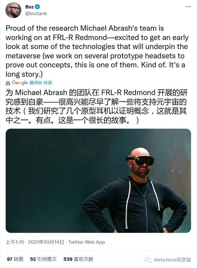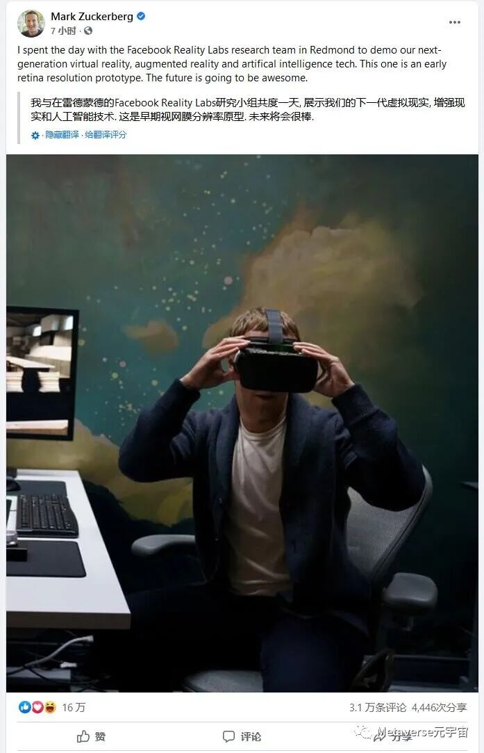 在 2021 年 10 月 13 日星期三發表的聲明中,扎克伯格表示:“我和 Facebook Reality 實驗室的研究團隊在雷德蒙度過了這一天,演示了我們的下一代虛擬現實技術”。
