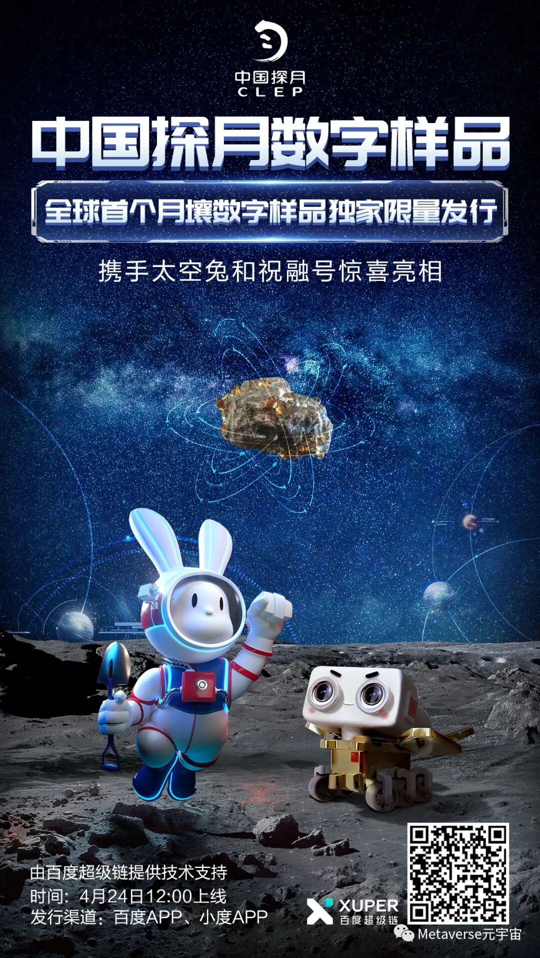根據 Metaverse元宇宙(ID:NFTMall)獲得的消息,4月24日,即中國航天日當天中午12點,中國探月工程將在百度超級鏈上推出全球首個月壤數字藏品,藏品將在小度App與百度App同步上線。