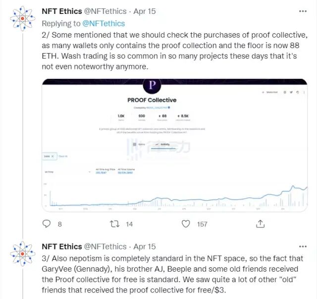 推特賬號 NFT Ethics 爆料 PROOF Collective NFT 可能存在「交易清洗」和「裙帶關系」