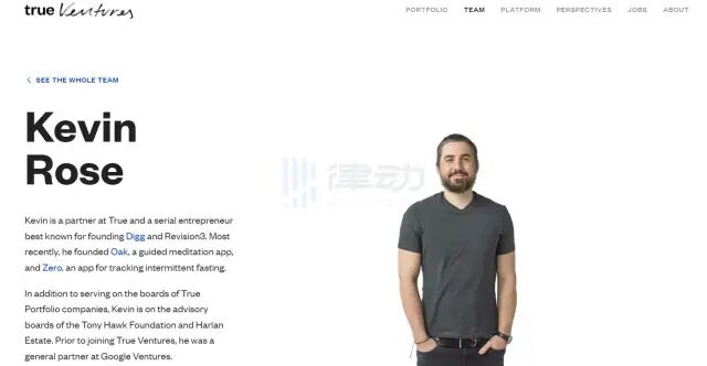 在 True Ventures 的官網可以查到 Kevin Rose 的相關信息