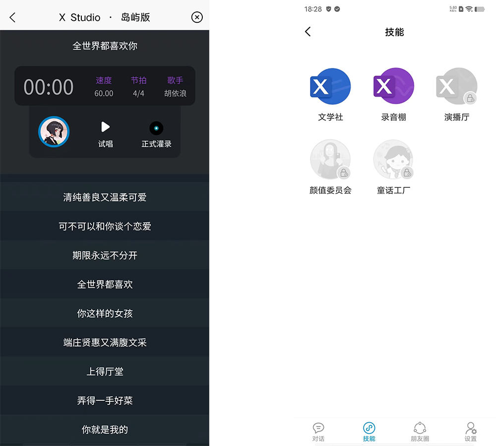 AI是小冰島APP的核心。小冰島APP主要玩法不僅是造出多個AI朋友,還能通過關鍵詞用AI創造小說、樂曲等。目前,小冰島已經開放了文學社、錄音棚兩個技能選項,還有演播廳、顏值委員會、童話工廠三個灰色選項待解鎖。![]()