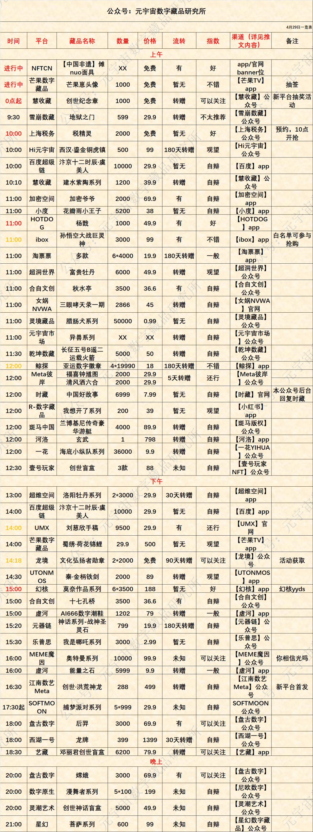 4月29日各平臺數藏預告丨幻核、小度、Meta彼岸等,新平臺也很多,一覽表記得保存!