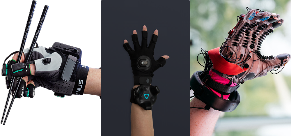 ▲從左到右分別為Manus、諾亦騰、Meta的VR手套