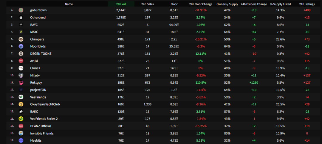 在過去的一周里,我們看到整體 NFT 市場處于橫盤的狀態,但是仍然有一些 NFT 的地板價有所上升,讓我們看看下面的截圖。