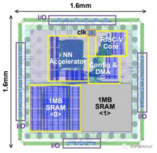 “測試芯片采用7nm制程,具有神經網絡加速器,由1024乘法累加陣列、2MB片上SRAM和32位RISC-V CPU組成。”研究人員說。
