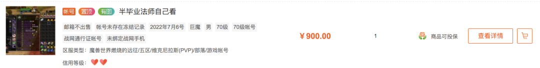 除此之外,即便是“靈魂綁定”后的裝備、物品或坐騎,也可以通過賬戶交易的方式進行轉移,也就是說,魔獸世界里的“靈魂綁定”概念,并不是指完全不可轉移的意思,它只是和游戲角色進行了綁定。