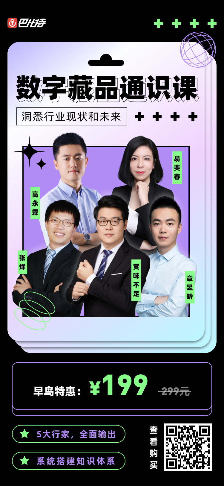 巴比特傾情打造【數字藏品通識課】正式上線!攜手5大行家,洞悉行業現狀和未來。早鳥優惠價199元,詳情查看:https://wnv.h5.xeknow.com/s/4rCwqz