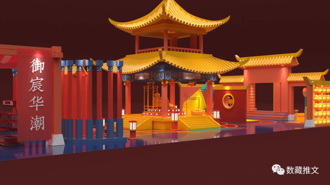 御宸華潮·蘭宮數字宮殿創意靈感源于中國皇家建筑。宮殿整體設計以東方美學為主線,輔之現代流行元素,朱墻金瓦,光輝奪目,雕梁畫棟,美輪美奐,檐牙高啄,錯落有致,宮燈上彩,交相輝映,處處閃爍東方神韻。