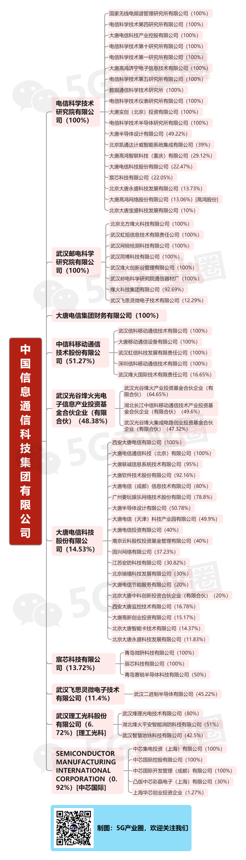 中國信息通信科技集團有限公司由原武漢郵電科學研究院(烽火科技集團)和原電信科學技術研究院(大唐電信集團)聯合重組而成,于2018年7月20日舉行成立大會。擁有核心知識產權移動通信國際標準的主要提出者之一,是國際知名的信息通信產品和綜合解決方案提供商,旗下上市公司有大唐電信、高鴻股份、理工光科、烽火通信、長江通信等。