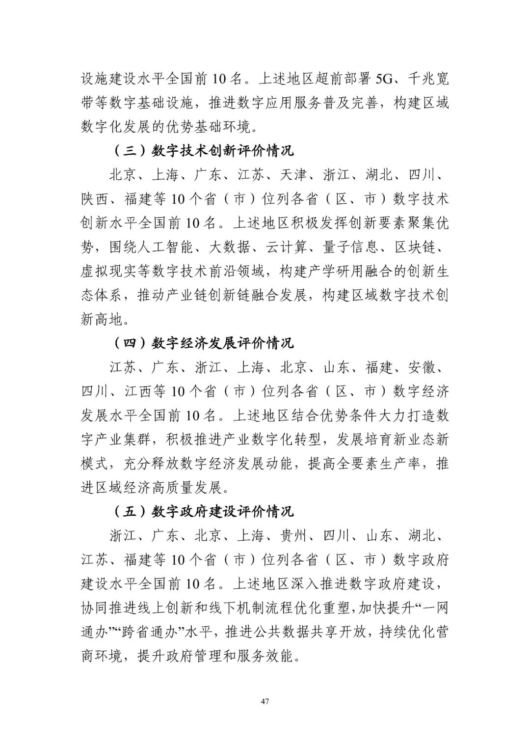 江蘇、廣東、浙江、上海、北京、山東、福建、安徽、四川、江西等10個省(市)位列各省(區、市)數字經濟發展水平全國前10名。