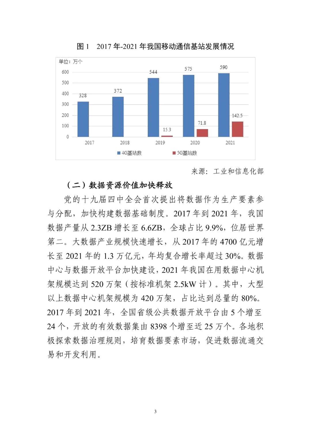 2017年到2021年,我國數據產量從2.3ZB增長至6.6ZB,全球占比9.9%,位居世界第二。大數據產業規模快速增長,從2017年的4700億元增長至2021年的1.3萬億元。公共數據開放取得積極進展,2017年到2021年,全國省級公共數據開放平臺由5個增至24個,開放的有效數據集由8398個增至近25萬個。各地積極探索數據治理規則,培育數據要素市場,促進數據流通交易和開發利用。