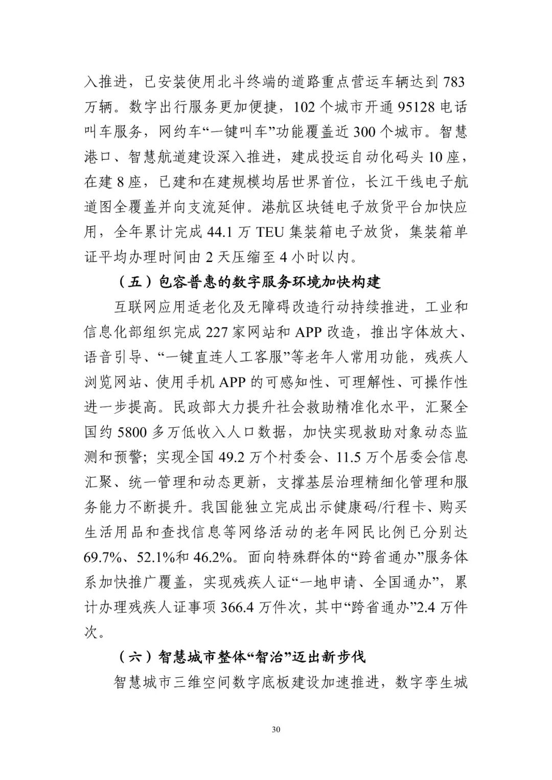 七是數字化發展治理取得明顯成效。