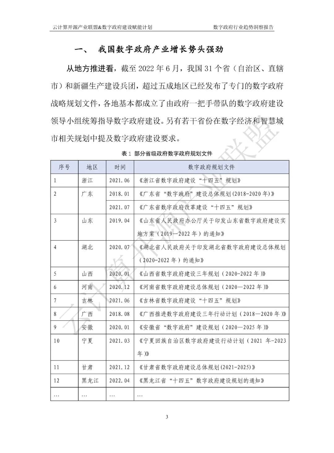 日前,在2022數字化轉型發展高峰論壇上,《數字政府行業趨勢洞察報告(2022年)》和《2022數字政府產業圖譜》正式發布,報告聚焦我國數字政府產業發展各環節,繪制產業全景,同時展望數字政府未來發展趨勢,旨在為我國數字政府的規劃、建設、發展等環節提供參考。
