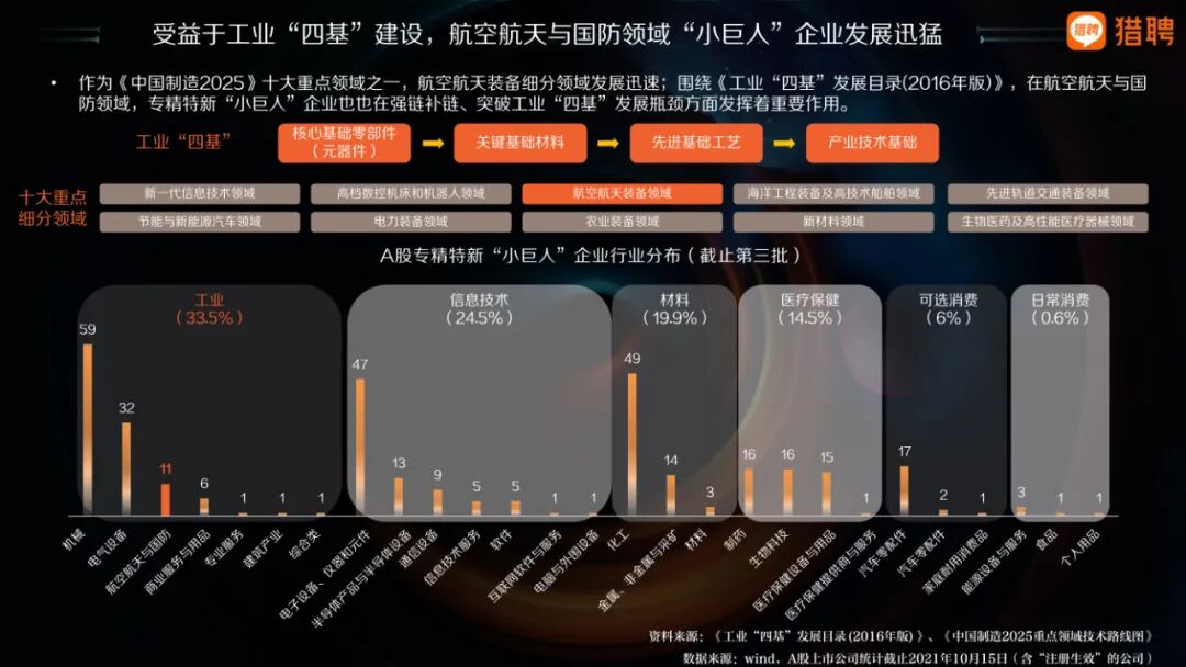 航天重大任務的成功實施和規劃的順利進行,對實現航天技術領域新跨越、推動我國由航天大國走向航天強國意義重大。經濟學家羅斯托在論述國民經濟時曾指出:“一個或幾個新的制造工業部門的迅速增長是經濟轉型強有力的核心引擎。”航空航天產業,作為目前科技制造領域的巔峰行業,是所有產業中價值鏈最長的,涉及多個系統共同復雜協作,對技術、工藝、經驗、材料、設備等方面都有極高的要求,其產業發展的帶動作用及高精尖技術的外溢釋放作用顯著。嫦娥探月、天問問天、神舟逐夢、北斗環宇,在國際競爭日益激烈的背景下,中國航天在取得一系列重大成績的同時,有力的促進航空航天產業市場規模快速擴大,帶動上下游產業鏈蓬勃發展,配套元器件、材料、芯片、設備制造等方向有望迎來爆發式增長,四大技術也有望開啟跨越式發展。