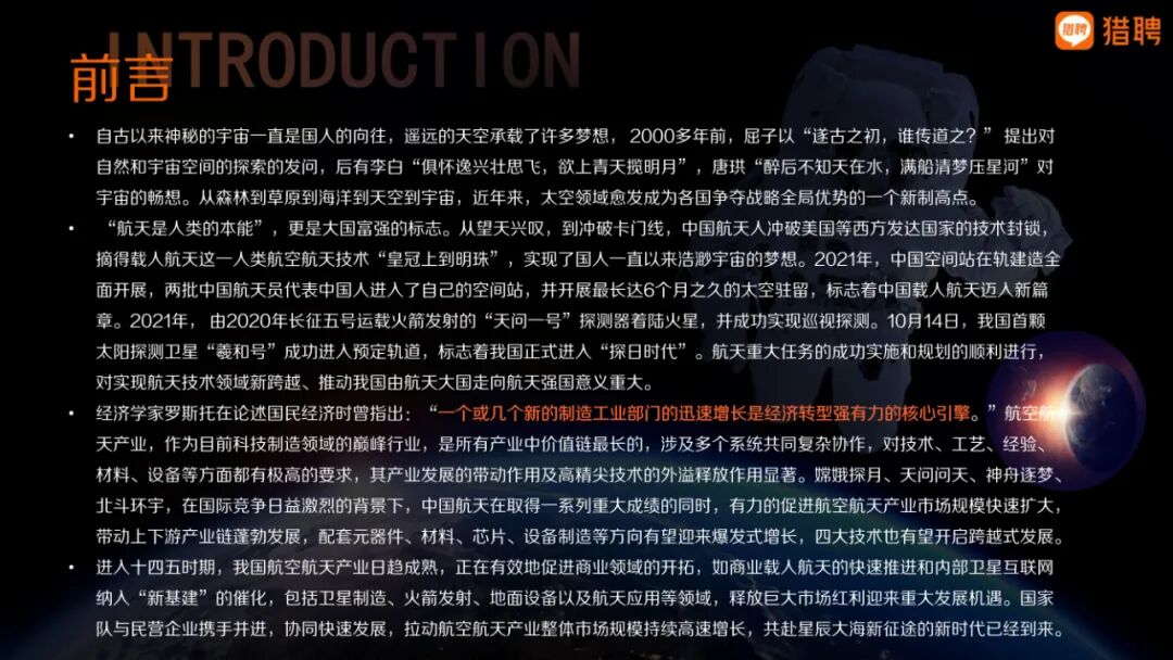 自古以來神秘的宇宙一直是國人的向往,遙遠的天空承載了許多夢想,2000多年前,屈子以“遂古之初,誰傳道之?”提出對自然和宇宙空間的探索的發問,后有李白“俱懷逸興壯思飛,欲上青天攬明月”,唐珙“醉后不知天在水,滿船清夢壓星河”對宇宙的暢想。從森林到草原到海洋到天空到宇宙,近年來,太空領域愈發成為各國爭奪戰略全局優勢的一個新制高點