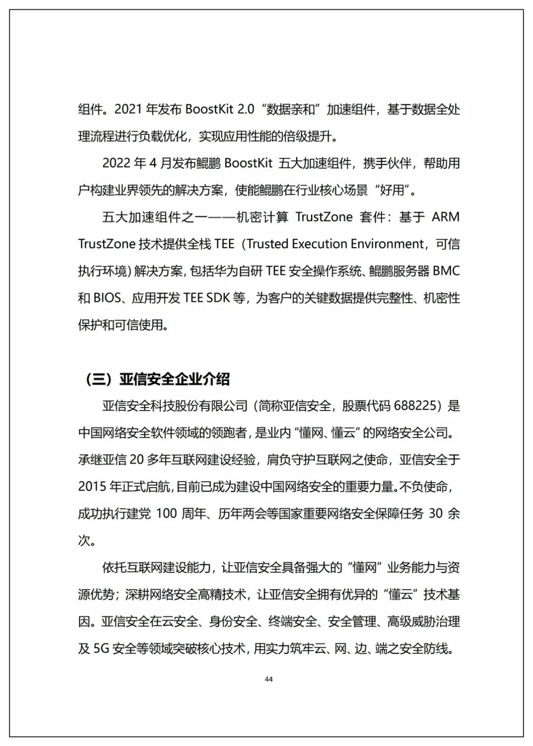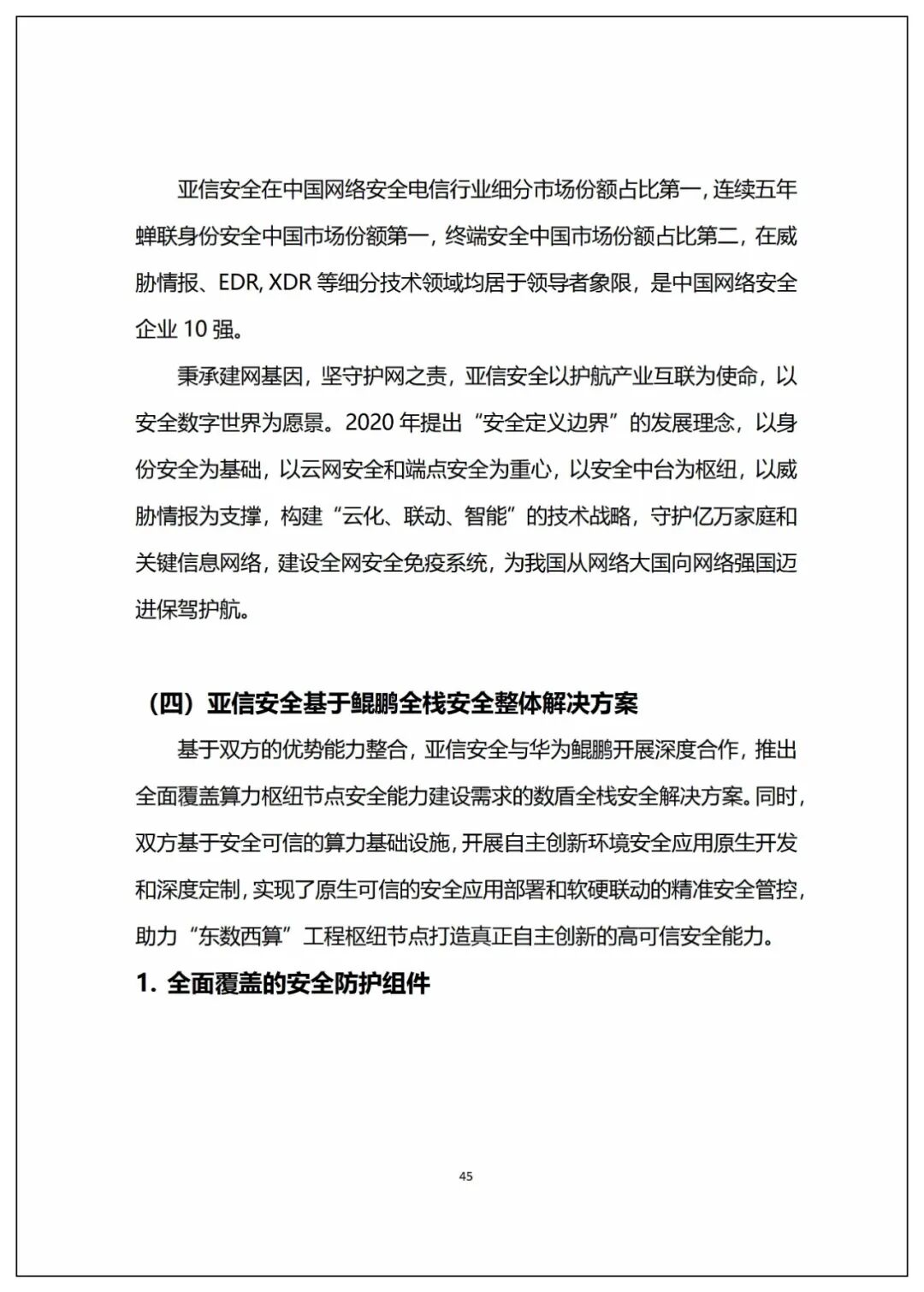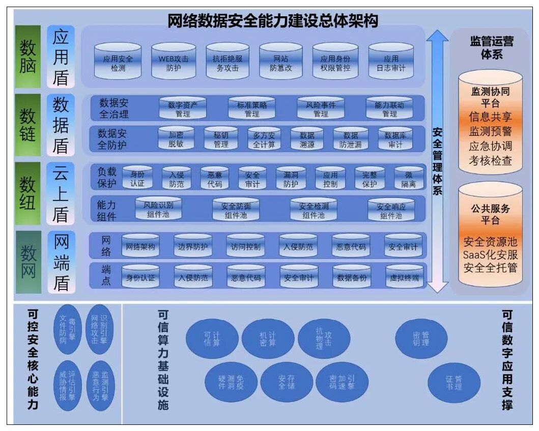 9月中旬,信息化百人會組織,亞信安全和華為聯合編寫的《東數西算工程算力樞紐安全能力建設白皮書》。《白皮書》凝結了行業專家的智慧,針對“東數西算”工程算力樞紐節點的安全能力建設需求、任務、目標以及內容等進行了梳理和明確。結合三方在各自領域的技術優勢、專家資源以及豐富的實踐經驗,《白皮書》首次形成并提出了算力樞紐安全能力建設框架,細化了網絡安全和數據安全建設的核心內容,為加快數字化產業與安全保障體系建設提供了有力支撐。1、白皮書認為,“東數西算”工程,是優化數據中心建設布局、促進東西部協同聯動的重要舉措,更是提升國家整體算力水平的重大戰略工程。這其中,網絡數據安全能力是“東數西算”的重要基礎保障,在“東數西算”工程設計之初即提出建立“數盾”安全體系,打造統一標準統一能力的安全底座,為“東數西算”的基礎設施和業務應用提供高水平一致性的網絡數據安全能力支撐。2、白皮書全面解讀了“東數西算”工程背景,在分析樞紐節點安全風險和安全建設現狀的基礎上,結合關鍵信息基礎設施保護相關要求和最佳實踐,規劃形成了算力樞紐安全能力建設框架,從安全自主創新核心能力、覆蓋云網邊端和數據應用的安全管理技術能力以及安全監管運營體系等維度細化了樞紐節點網絡數據安全建設的核心內容。3、白皮書建議構建可控安全核心能力,并提出建設可信算力基礎設施和可信數字應用支撐,形成覆蓋安全建設和安全運維生命周期的信息安全防護管理體系,配合“數網”、“數紐”、“數鏈”和“數腦”建設,從“網端盾、云上盾、數據盾、應用盾”4個層次,搭建一體化安全防護技術支撐框架。此外,開展集監測、分析、響應、協同于一體的監測協同平臺建設,構建多種形態覆蓋多場景適用的樞紐節點網絡安全公共服務能力。4、白皮書詳細介紹了亞信安全與華為鯤鵬合力推出的數盾全棧安全解決方案。該方案結合雙方的能力優勢,全面覆蓋了算力樞紐節點安全能力建設需求。雙方基于安全可信的算力基礎設施,開展自主創新環境安全應用原生開發和深度定制,實現了原生可信的安全應用部署和軟硬聯動的精準安全管控,打造自主創新的高可信安全能力的實踐經驗。