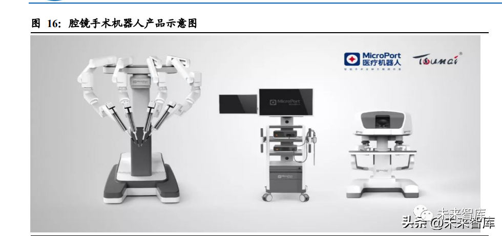 中國多孔腔鏡機器人增速高于全球平均增速。多孔腔鏡手術機器人市場規模由 2016 年的 6.81 億元增至 2020 年的 21.97 億元,年復合增長率為 34.0%,預計于 2030 年 前將達到 151.19 億元,2020 年至 2030 年的年復合增長率將為 21.3%。無論從現有 增速或是預期增速角度看來,中國多孔腔鏡手術機器人的增長均更為迅速。中國首批單孔腔鏡手術機器人即將實現商業化,市場潛力巨大。首批單孔腔鏡手術 機器人預計于 2022 年在中國實現商業化,市場規模預計于 2022 年達 2.38 億元,并 于 2030 年進一步增至 144.75 百萬元,年復合增長率為 67.1%。隨著中國患者群體 對微創手術的優點認識有所增加,以及對較好的愈后、較少的術后并發癥及疼痛、 較小的傷口及較短的住院時間的期望,單孔腔鏡手術機器人市場潛力巨大。國產多孔腔鏡手術機器人迎來重大突破,打破進口壟斷。達芬奇 Si 及達芬奇 Xi 手 術系統早在 2011 年及 2018 年便獲得中國國家藥監局批準, 是唯一的無手術類別使 用限定的腔鏡手術機器人,在過去很長時間內獨占中國市場,2021 年威高集團的妙 手拿到國產腔鏡手術機器人第一證,2022 年 1 月圖邁腹腔鏡手術機器人獲批上市, 是首款由中國企業研發并獲準上市的四臂腔鏡手術機器人,標志著國產手術機器人 在腔鏡手術機器人商業化進入新的階段。