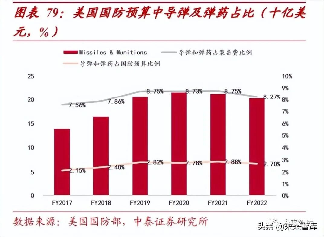 陸軍新一代火力裝備,智能彈藥放量有望加速。兵器工業集團是我國 火炮、坦克等陸軍核心火力裝備的供應商,隨著智能化、信息化的程 度不斷加深,兵器集團也為陸軍量身打造了智能化彈藥,進一步提升 打擊精度,提高打擊效率。以遠程火箭彈、反坦克導彈等為代表的陸 軍新一代智能彈藥有望放量,尤其是遠程火箭彈,具備打擊精度高、 射程遠和成本低廉等多重優勢,有望在局部作戰中擔綱主角。從業績 來看,2022 年相關企業增速維持在 15%左右,兵器集團智能化彈藥仍 處于列裝放量前夕,展望十四五后期,隨著陸軍對信息化作戰裝備的 需求逐步釋放,兵器導彈放量有望加速。