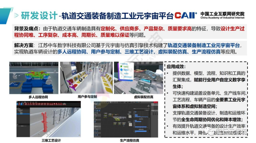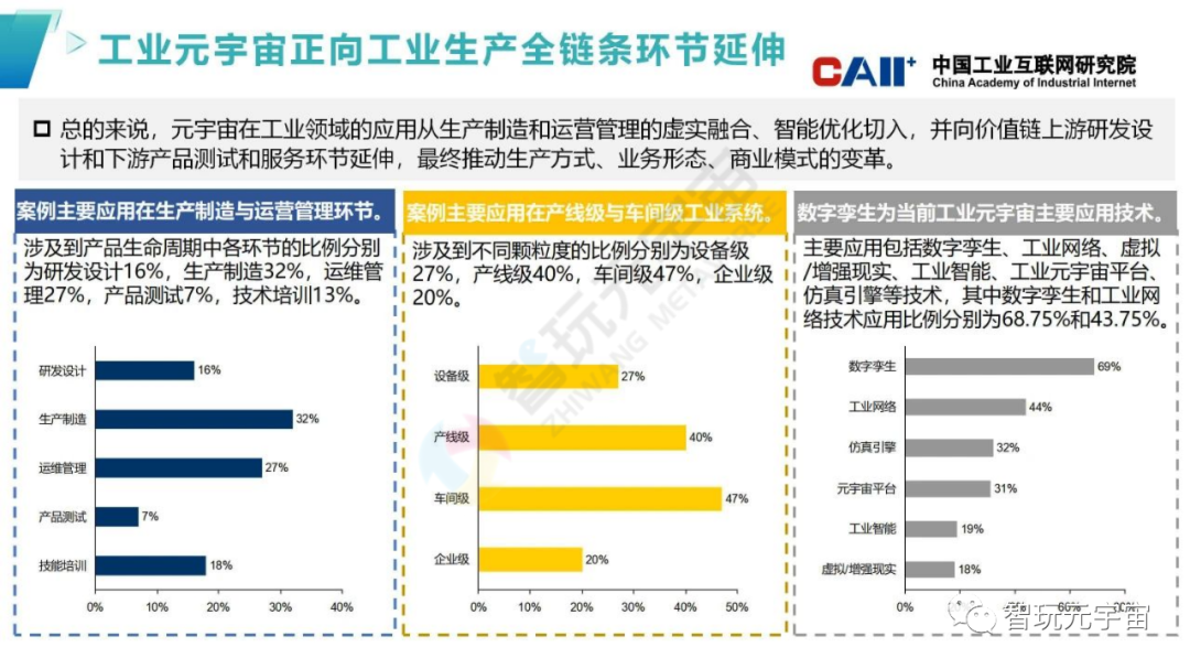 為深入了解工業元宇宙在產品生命周期的應用情況,中國工業互聯網研究院先后從互聯網與企業收集了眾多應用案例,梳理了工業元宇宙在研發設計、生產制造、運維管理、技能培訓、產品測試的五大類應用場景,匯總業界優秀應用案例,歸納了各類場景的應用模式,總結了在制造業采礦業等重點行業的差異化發展路徑及典型模式,根據工業元宇宙發展應用現狀、需求、特點從多維度提出進一步促進工業元宇宙應用的建議.