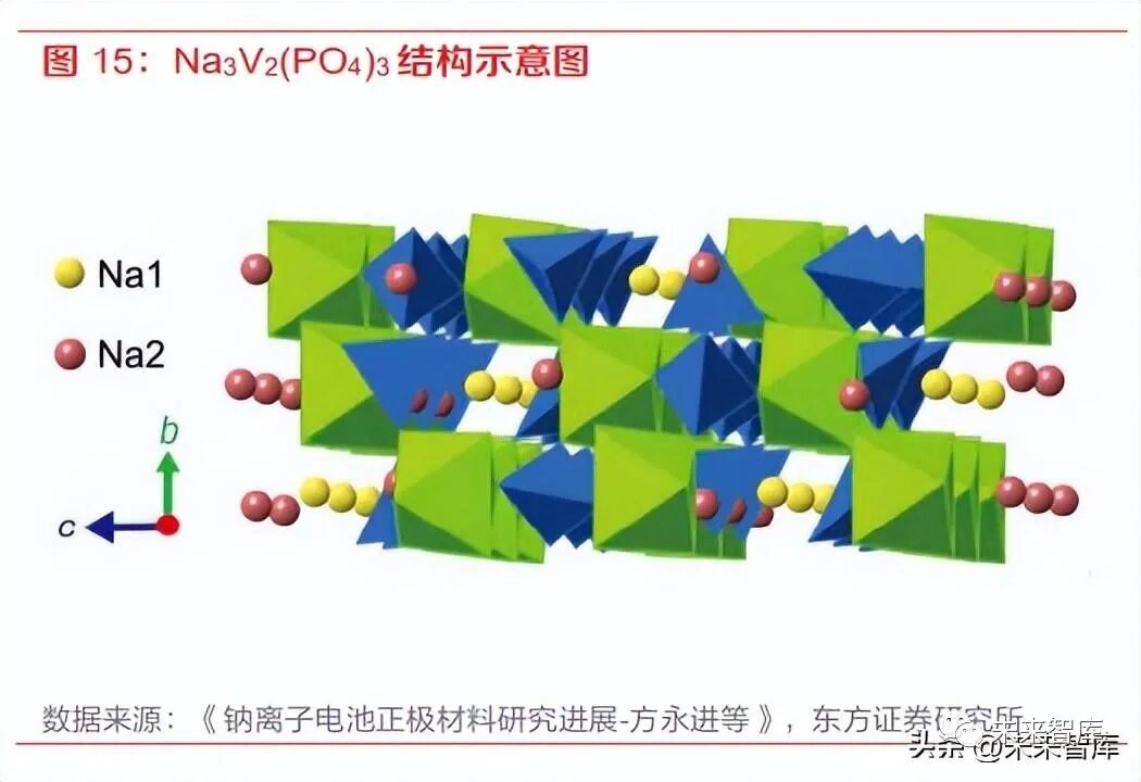 聚陰離子類材料循環壽命長安全性高,但理論容量存在局限。聚陰離子類化合物結構通式為 NaxMy(XaOb)zZw,具備穩定的多面體框架結構,可以獲得更高的循環性與安全性,但是,這類化 合物存在著電子電導率和體積能量密度低的問題。聚陰離子類化合物可以分為磷酸鹽、硫酸鹽和 混合陰離子化合物體系,其中磷酸鹽類化合物的研究進展最為深入,包括橄欖石結構 NaMPO4、 NASICON 結構 Na3V2(PO4)3和焦磷酸鹽結構 Na2MP2O7(M=Fe,Mn,Co),均具有潛在的應用前 景。