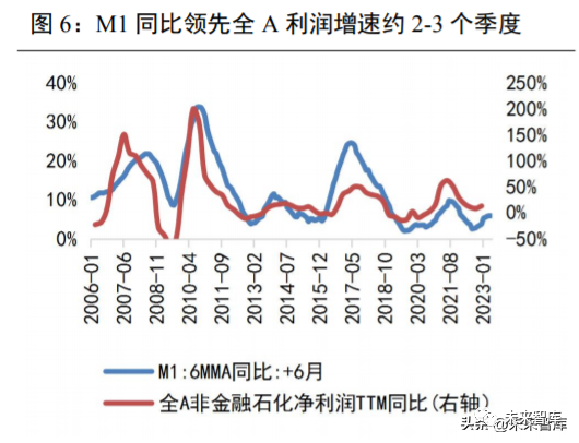 宏觀經濟復蘇預期之下,新材料板塊有望在 2023 年實現利潤增速回升。從上市公司整體角度觀察,2022 年二季度以來 M1 同比增速已經明顯回升,領先全 A 利潤增速 2-3 個季度,因此我們認為全 A 利潤有望在 2023 年回升,這將帶來下游需求的改善和資本開支意愿的提升,從而對新材料需求提升形成支撐,構成新 材料板塊 2023 年利潤增長的重要宏觀驅動力。