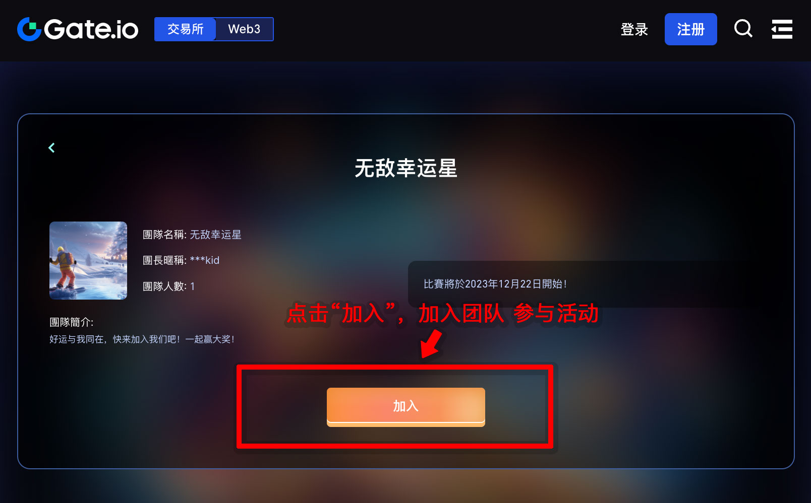 2,老用戶可跳過注冊,直接接加入團隊賽。
