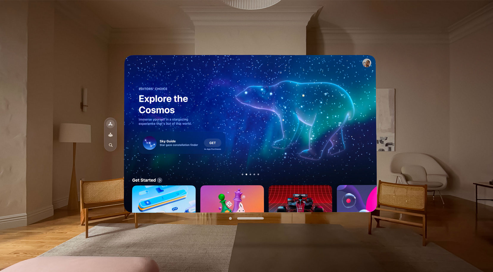 奠基于 macOS、iOS 與 iPadOS 數十年的工程創新基礎,visionOS 從設計之初就支援空間運算對低延遲的要求。其成果就是帶來革命性的作業系統,提供強大之空間體驗,利用使用者周圍的空間,在工作與家庭釋放各種新機會。